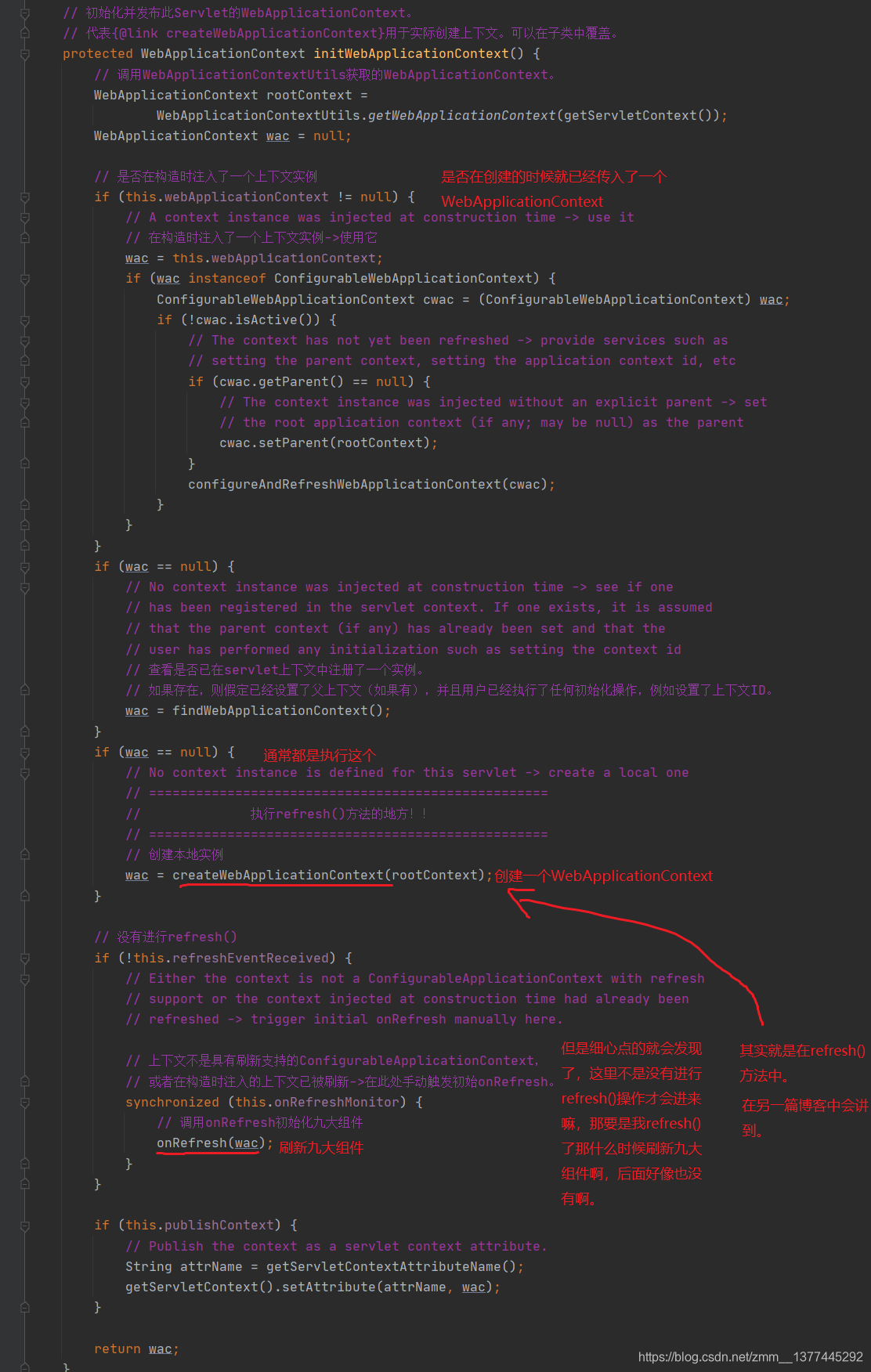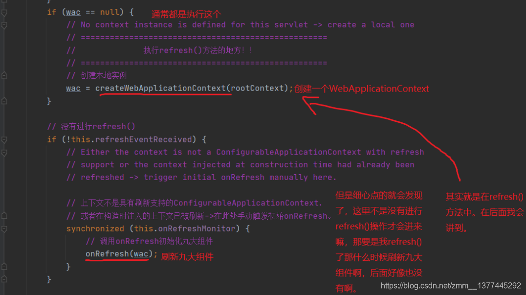 前面我们知道看初始化的时候,如果进行了refresh(),下面的onRefresh()方法好像就不能调用了啊,那九大组件到底是什么时候初始化的呢?