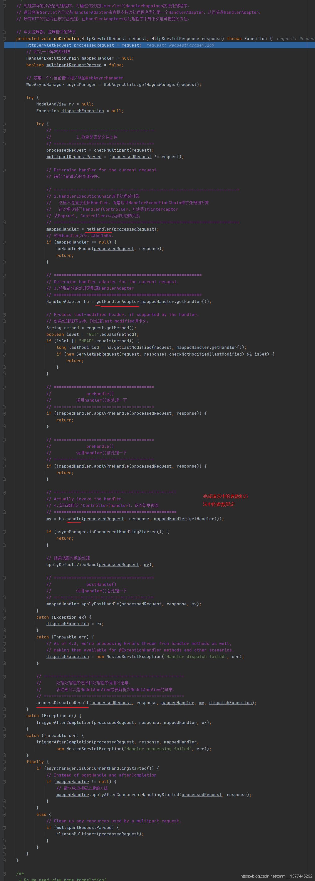 在doService()方法中。其中最核心的方法是doDispatch()方法。