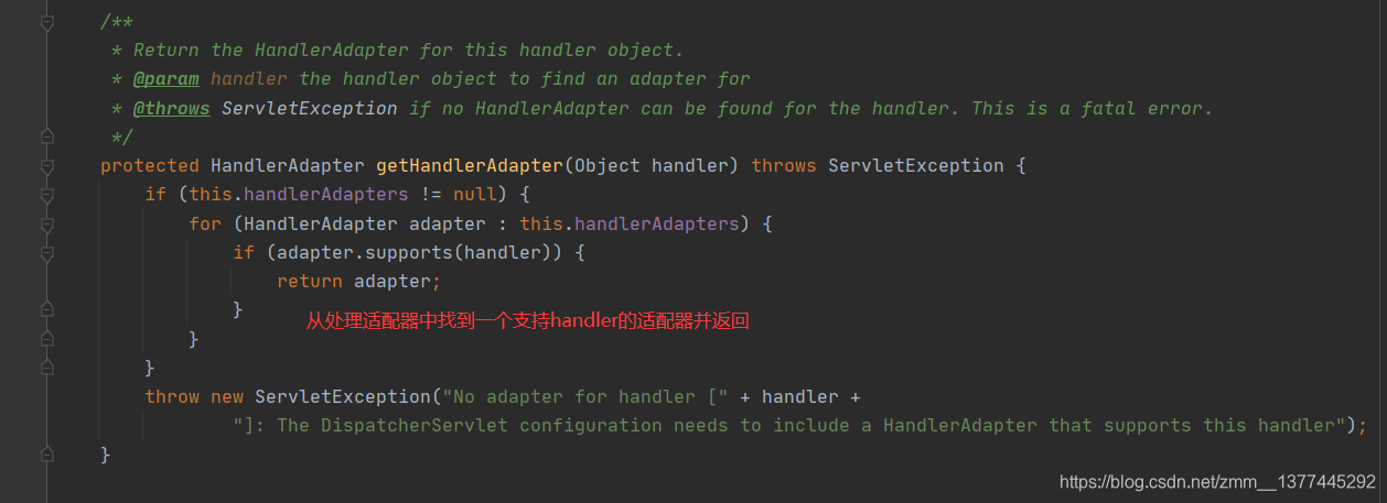 3. 获取一个支持的处理适配器HandlerAdapter。getHandlerAdapter()