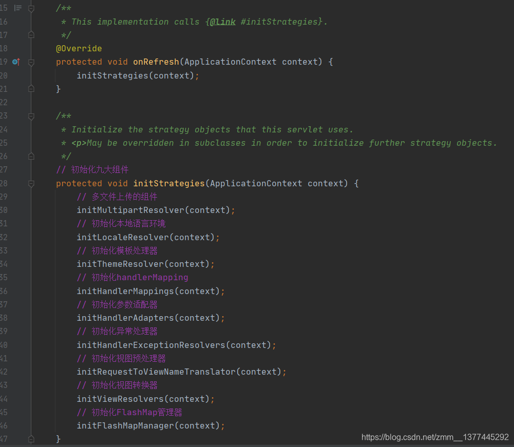 在DispatcherServlet中,onRefresh()方法和initStrategies()方法